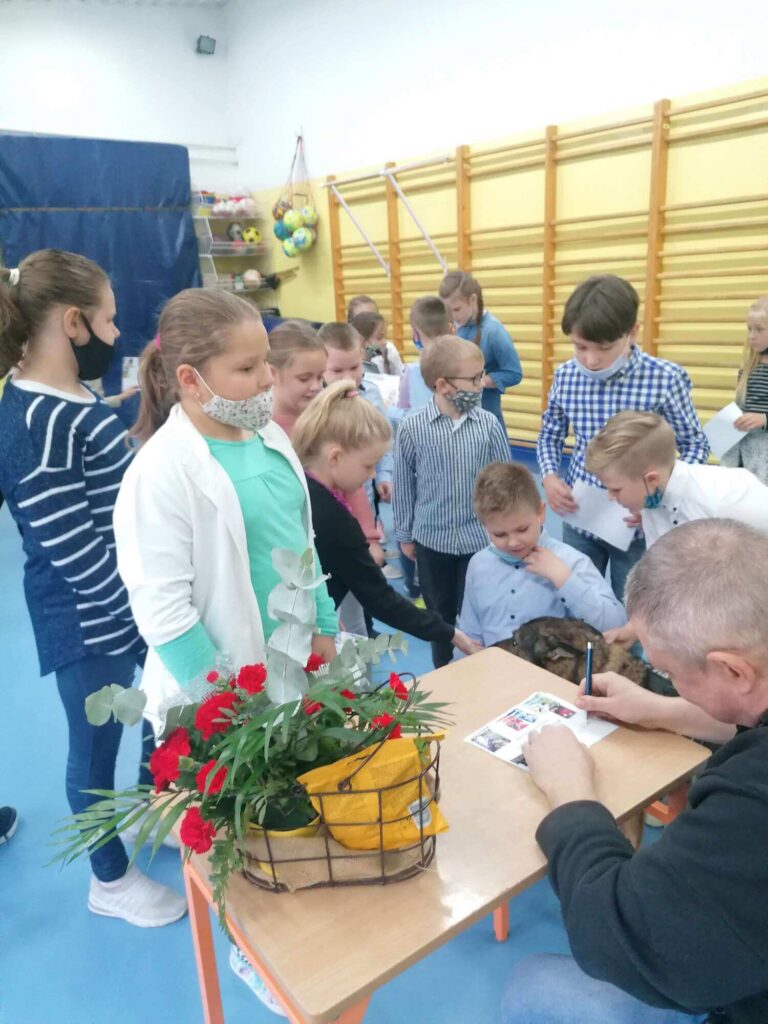 Podczas spotkania uczniowie dowiedzieli dlaczego Marcin Pałasz został autorem książek dla dzieci oraz o tym, jak wygląda życie pisarza.