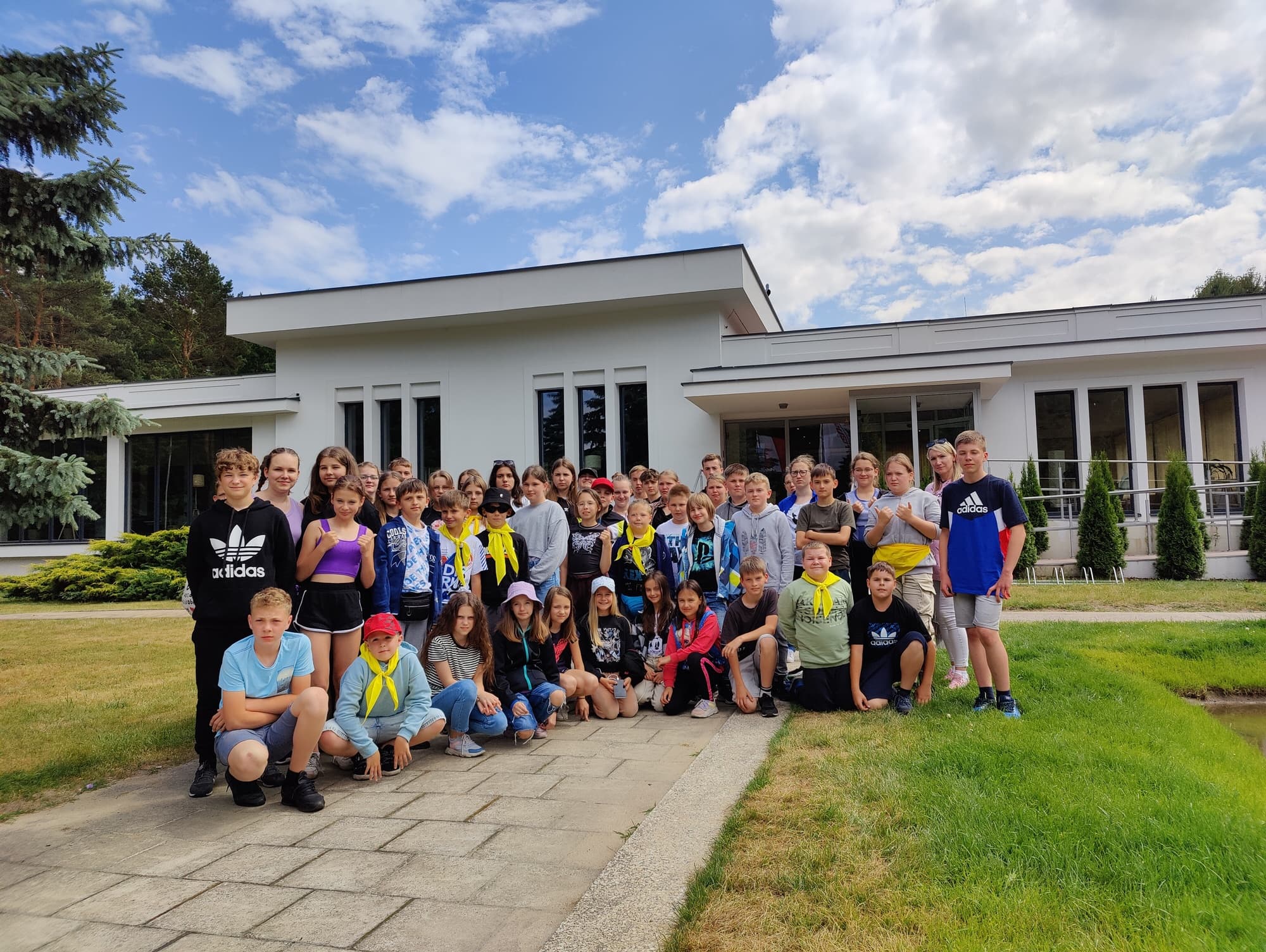 Z Warszawą przywitaliśmy się na Placu Zamkowym, ponieważ tam, pod Kolumną Zygmunta III Wazy, czekaliśmy na przewodniczkę. Wyruszyliśmy z nią na zwiedzanie miasta. Odwiedziliśmy Bazylikę Archikatedralną Świętego Jana Chrzciciela, dzwon na Kanonii, Rynek Starego Miasta, Barbakan, Pomnik Małego Powstańca, ulicę Krakowskie Przedmieście, skwer Adama Mickiewicza, Pałac Prezydencki, Bazylikę Świętego Krzyża, pomnik Mikołaja Kopernika i Grób Nieznanego Żołnierza, przy którym widzieliśmy zmianę warty. Po tym intensywnym zwiedzaniu pożegnaliśmy się z naszą przewodniczką i mieliśmy okazję odpocząć podczas przejażdżki metrem. Większość z nas pierwszy raz podróżowała tym środkiem transportu, więc było to dla nas nie lada przeżycie. Ze stacji metra udaliśmy się do Muzeum Powstania Warszawskiego, gdzie dowiedzieliśmy ciekawych faktów o Warszawie podczas II wojny światowej. Przeszliśmy repliką kanałów i poczuliśmy się jak bohaterowie lektury Galop ’44. Po zwiedzeniu muzeum udaliśmy się autokarem do galerii handlowej Złote Tarasy, która wywarła na nas wrażenie swoim rozmachem. Po tylu doświadczeniach marzyliśmy już o odpoczynku w hotelu. Autokarem udaliśmy się do Leśnej perły w Nadarzynie pod Warszawą, gdzie czekała na nas pyszna obiadokolacja.
